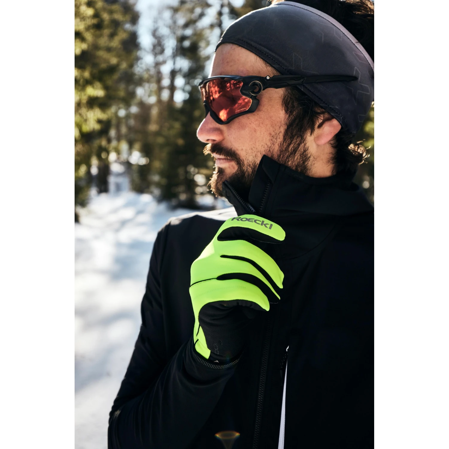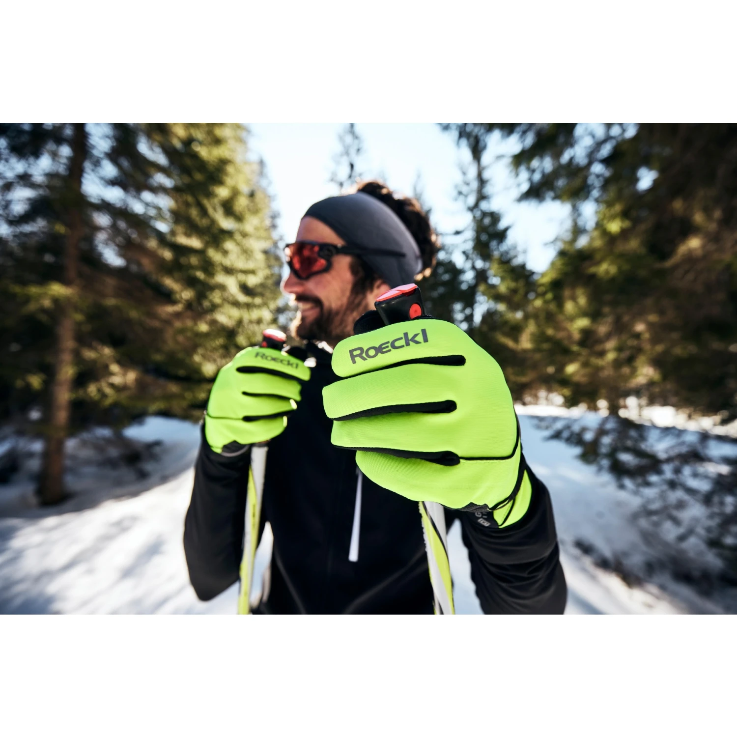 Auf der Innenhand kommt wiederum das Erfolgsmaterial ROECK-GRIP® zum Einsatz. Es ist extrem griffig und taktil, dabei hoch atmungsaktiv und sehr elastisch. Kurzum: Es bietet einen herausragenden Tragekomfort und einen sicheren Griff für kraftvollen Stockeinsatz. Auf der Oberhand verwendet Handschuhspezialist ROECKL SPORTS absolut winddichtes GORE-TEX INFINIUM™ WINDSTOPPER® Soft Shell Elastic, das auch bei intensiver körperlicher Belastung ein effektives Feuchtigkeitsmanagement sicherstellt. So bleiben die Hände angenehm trocken und warm.